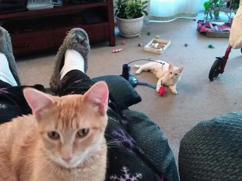 Hanna (now named Roslyn) and Gretel in their new home! Yay! Sister staying together!