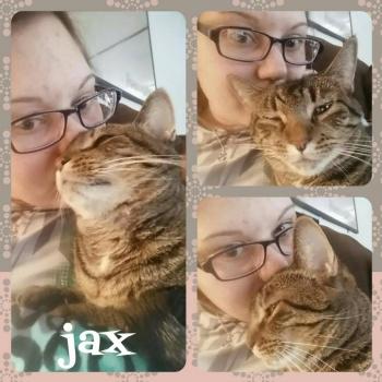 Jax From Jax's new mama: Jax loves sitting in the big bay window chasing birds! I'm so happy I gave her a home. She deserves it after being in the shelter so long. I'm very happy I got her! She's a lover!